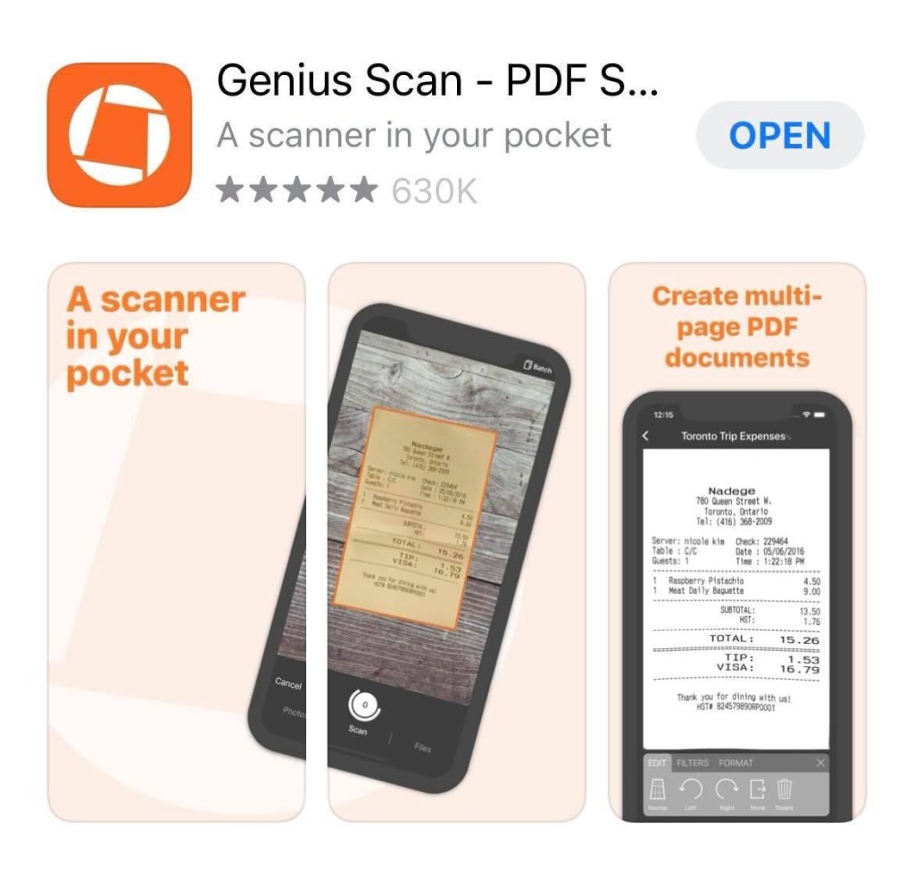 Need to scan a document but you don’t have your computer with you use Genius Scan app. It’s FREE